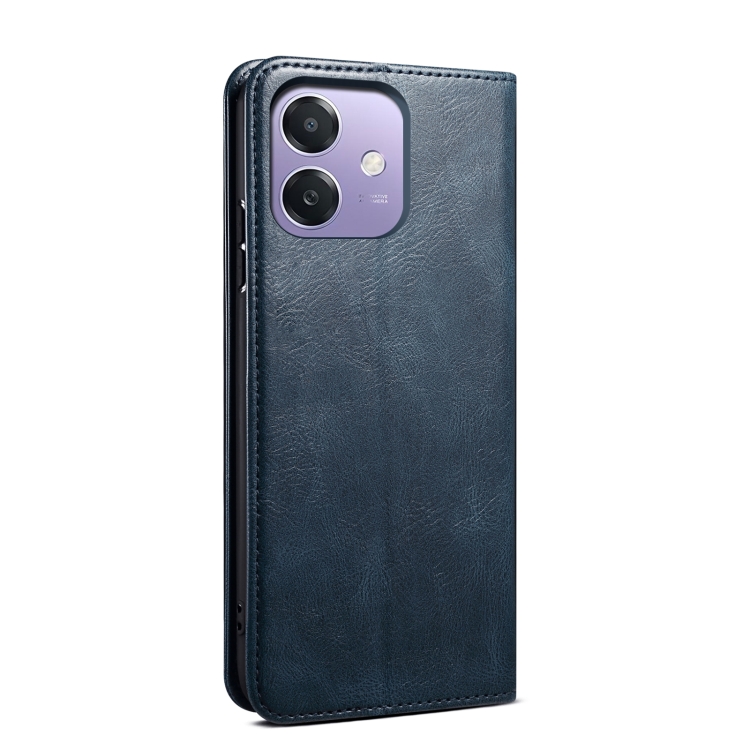 Funda de Cuero con Textura Crazy Horse y Cera de Aceite de la India para Oppo A3X 5G (Azul Marino)