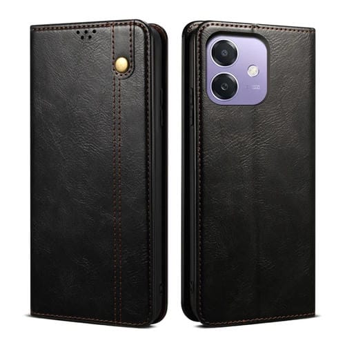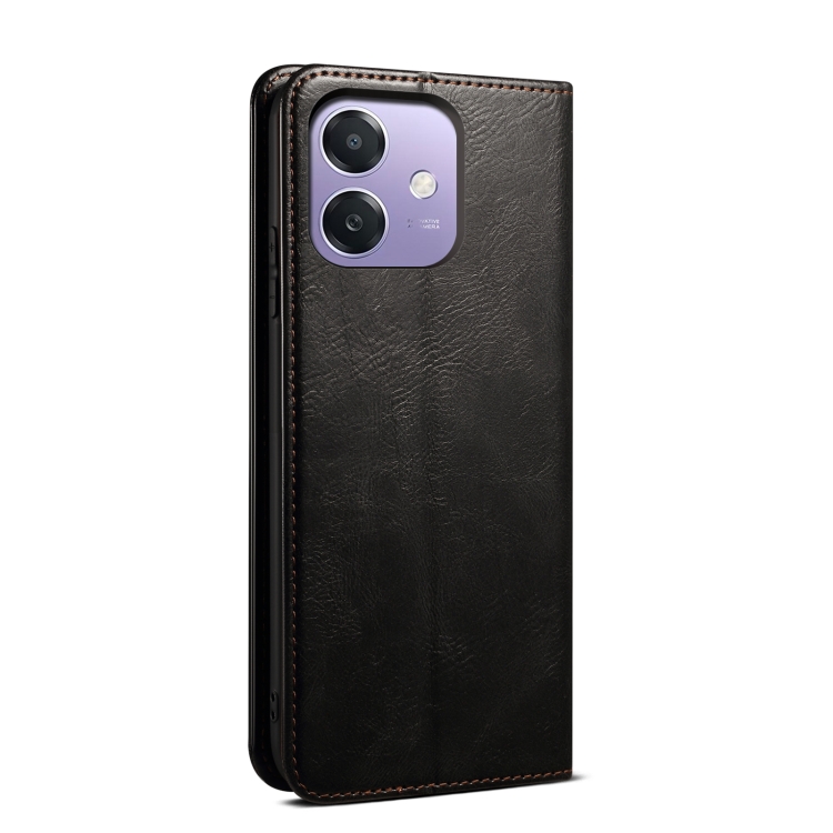 Funda de Cuero con Textura Crazy Horse y Cera de Aceite de la India para Oppo A3X 5G (Negra)