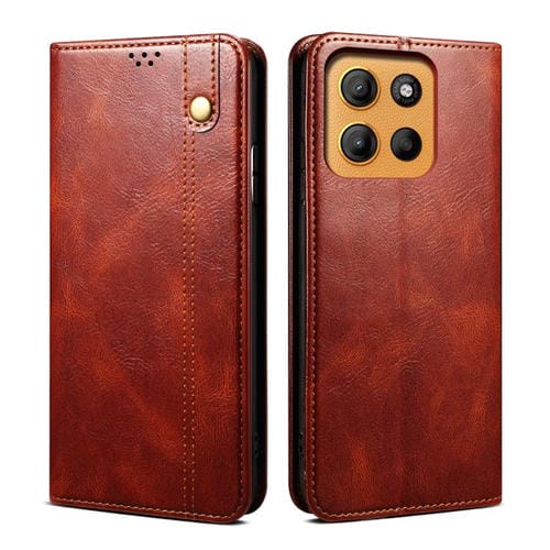 Funda de Cuero Crazy Horse con Cera de Aceite para Motorola Moto G15 (Marrón)