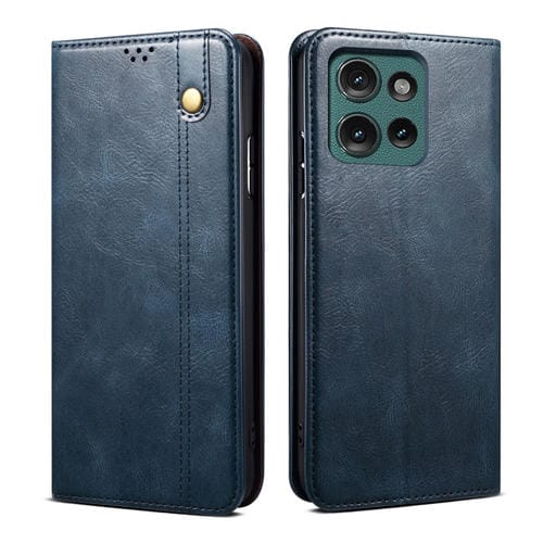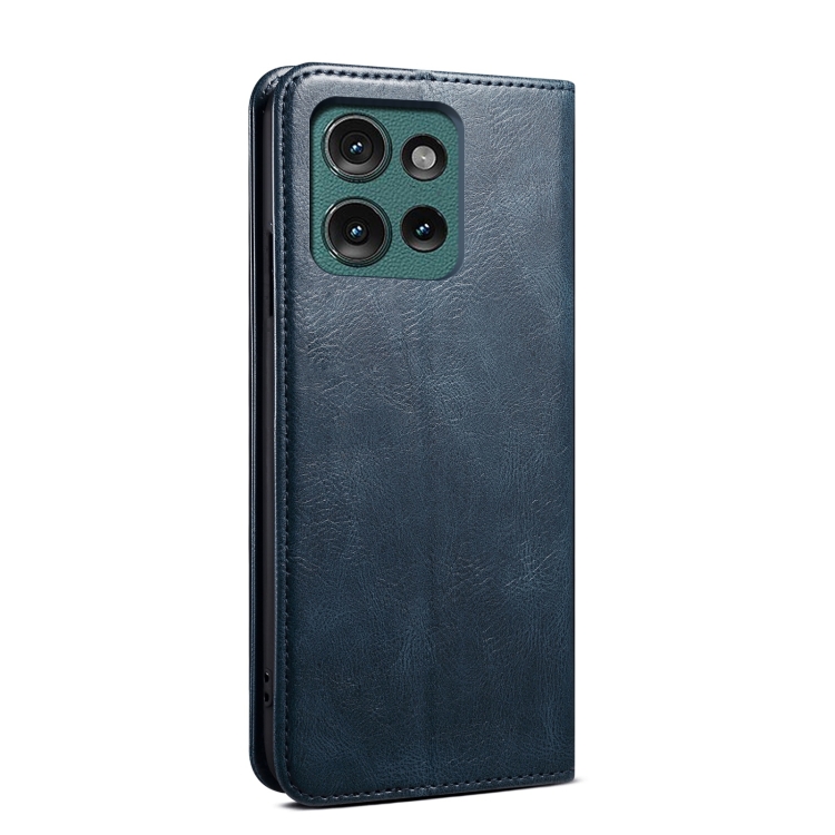 Funda de Cuero Crazy Horse con Cera de Aceite para Motorola Moto G75 5G (Azul)