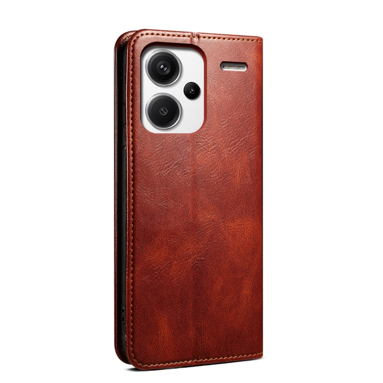 Funda de Cuero con Textura Crazy Horse y Cera de Aceite para Redmi Note 13 Pro+ (Marrón)