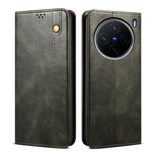 Funda de Cuero con Textura Crazy Horse y Cera de Aceite para Vivo X200 Pro Mini (Verde)