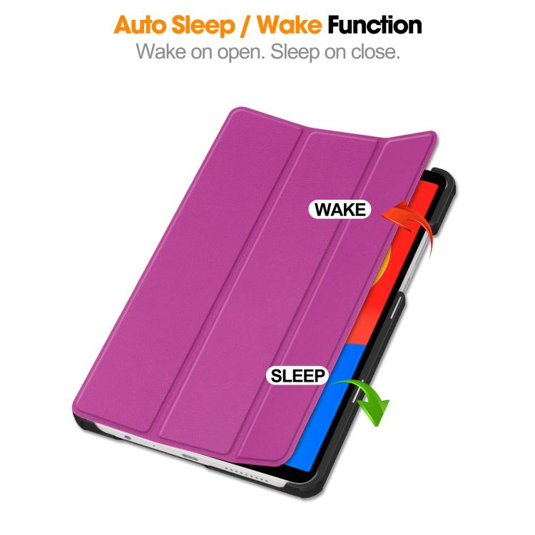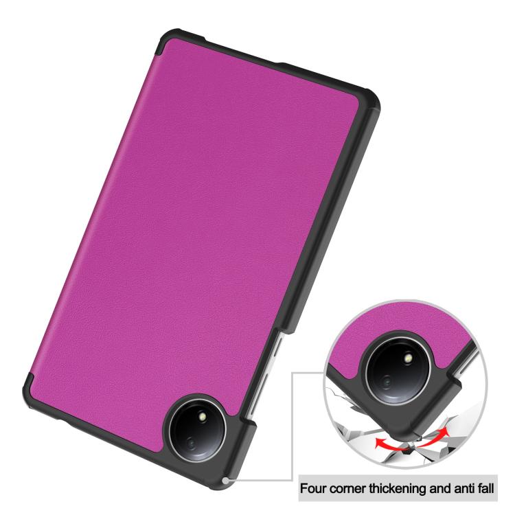 Funda de cuero con textura Custer y tres pliegues para Xiaomi Redmi Pad SE 8.7 (morado)