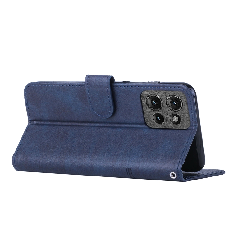 Funda de Cuero con Textura de Becerro y Costuras para Motorola Edge 50 (Azul)