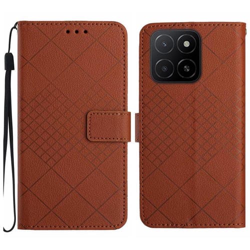 Funda de Cuero con Textura de Cuadrícula Rómbica para Honor X8C 4G (Marrón)
