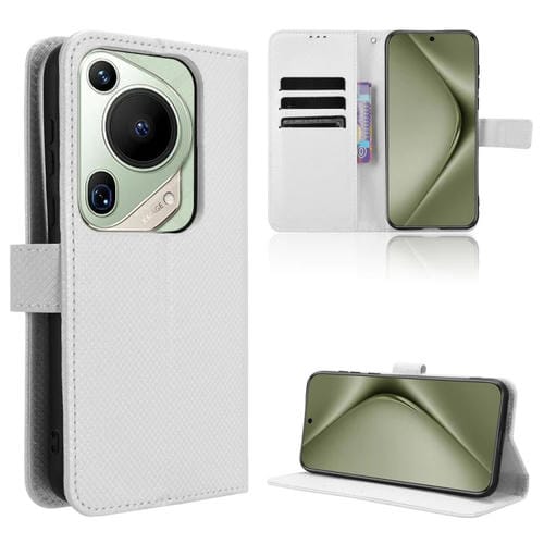 Funda de Cuero con Textura de Diamante para Huawei Pura 70 Pro y 70 Pro+ (Blanca)