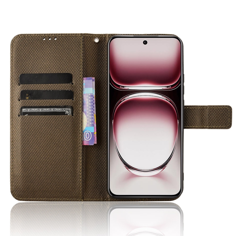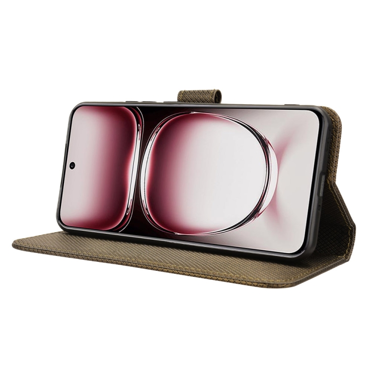Funda de Cuero con Textura de Diamante para Oppo Reno12 5G Global (Marrón)