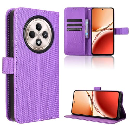 Funda de Cuero con Textura de Diamante para Oppo Reno12 F 5G (Morado)