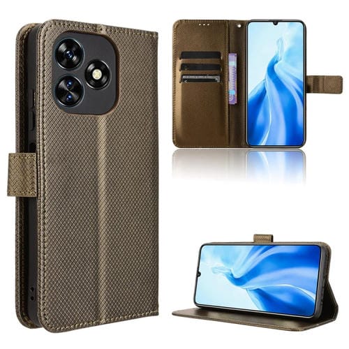 Funda de Cuero con Textura de Diamante para Oukitel C51 (Marrón)