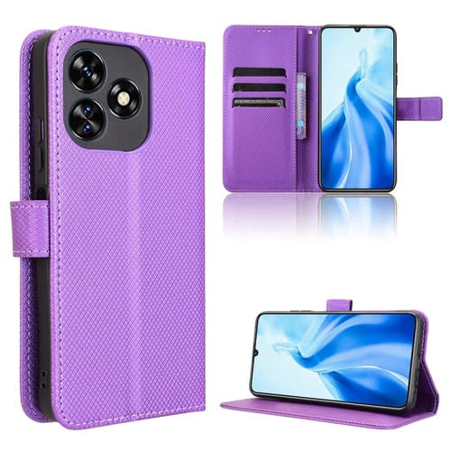 Funda de Cuero con Textura de Diamante para Teléfono Oukitel C51 (Morado)