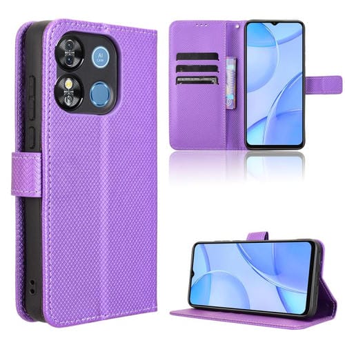 Funda de Cuero con Textura de Diamante para Oukitel C57S (Morado)