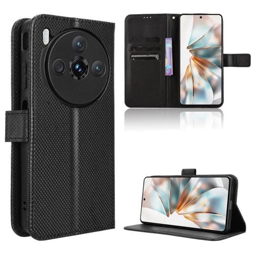Funda de Cuero con Textura de Diamante para ZTE Nubia Z60S Pro (Negra)