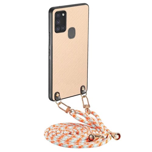 Funda Cuero Samsung Galaxy A21S Textura Fibra de Carbono Correa Cruzada (Caqui)