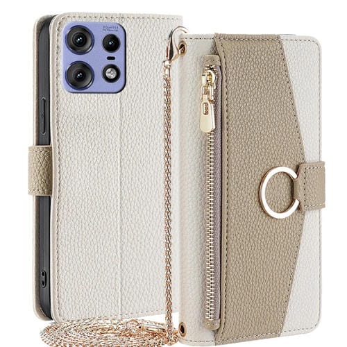 Funda de Cuero con Textura de Lichi para Motorola Edge 50 Pro 5G (Blanca)