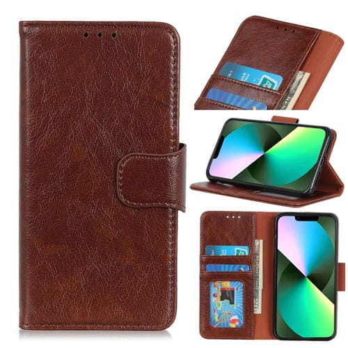 Funda de Cuero Textura de Napa para iPhone 14 (Marrón)