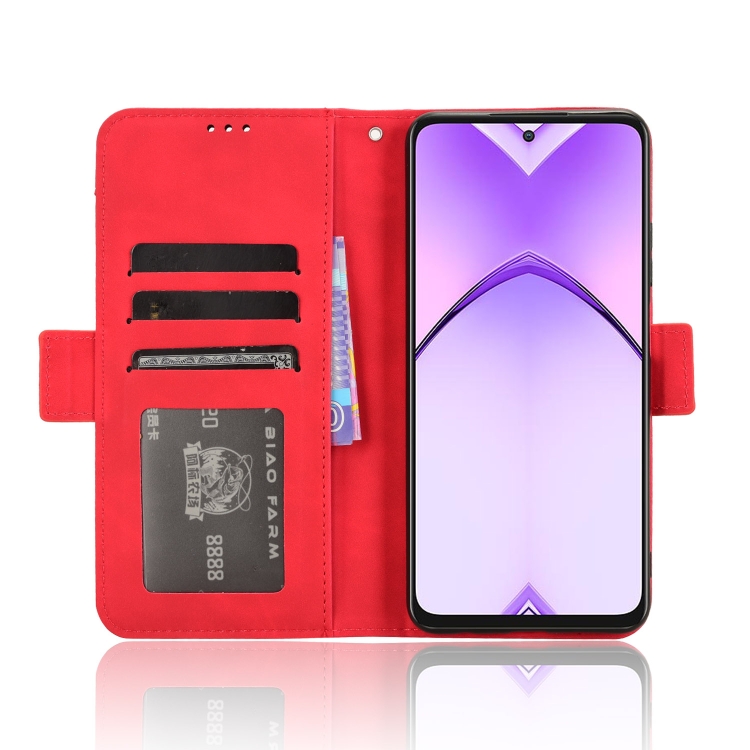Funda de Piel con Textura de Becerro y Ranuras para Tarjetas para Oppo A3 Pro 5G (Roja)