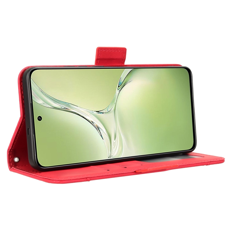 Funda de Cuero con Textura de Piel de Becerro y Ranuras para Tarjetas para Oppo K12X 5G / Oneplus Nord Ce4 Lite 5G (Rojo)