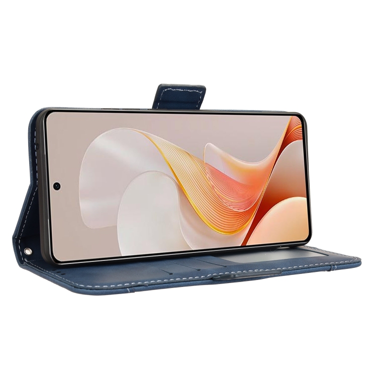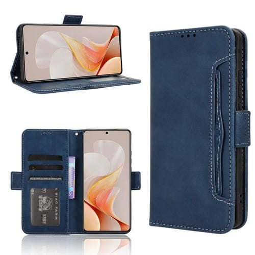 Funda de Piel con Textura de Becerro y Ranuras para Tarjetas para Vivo S19 5G (Azul)