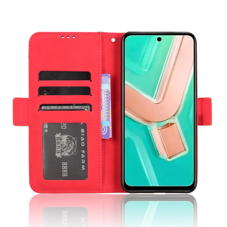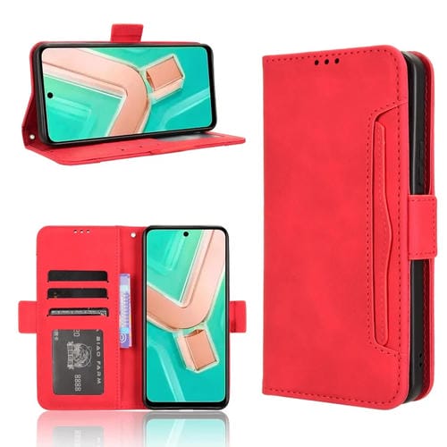 Funda de Cuero con Textura de Piel de Becerro y Ranuras para Tarjetas para Vivo Y28 4G (Rojo)