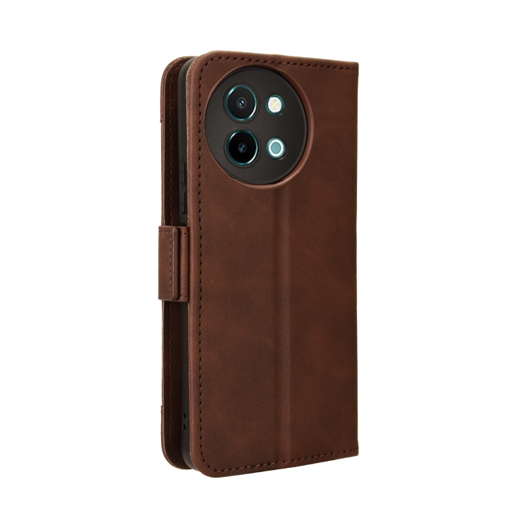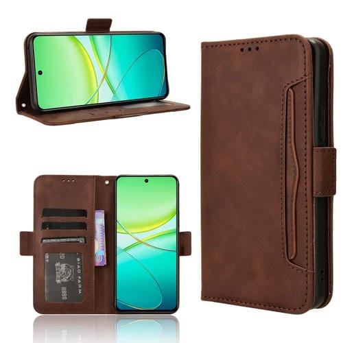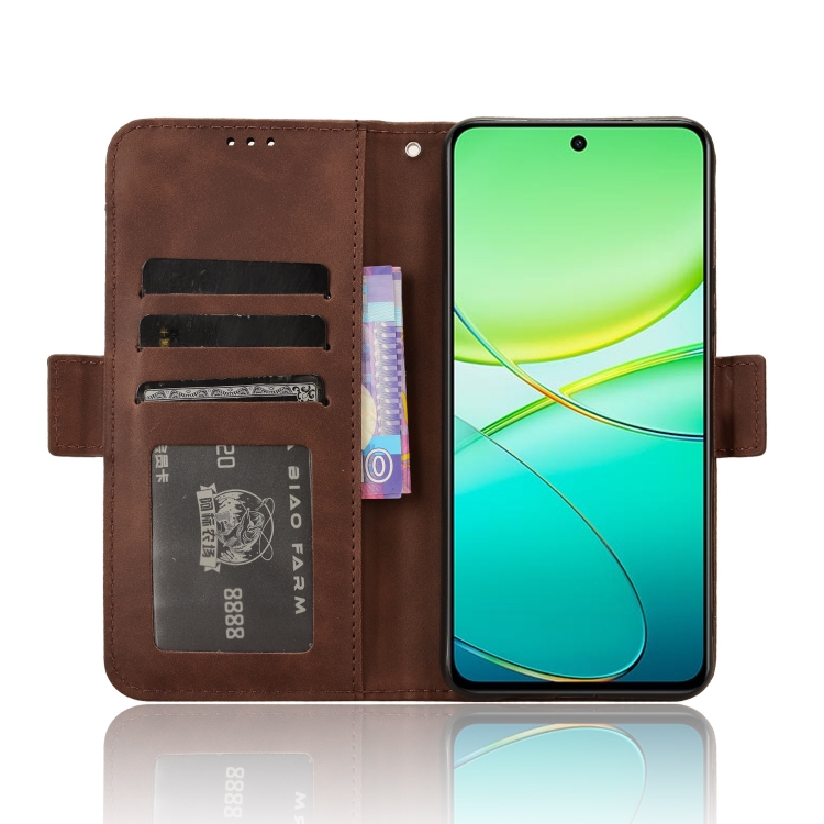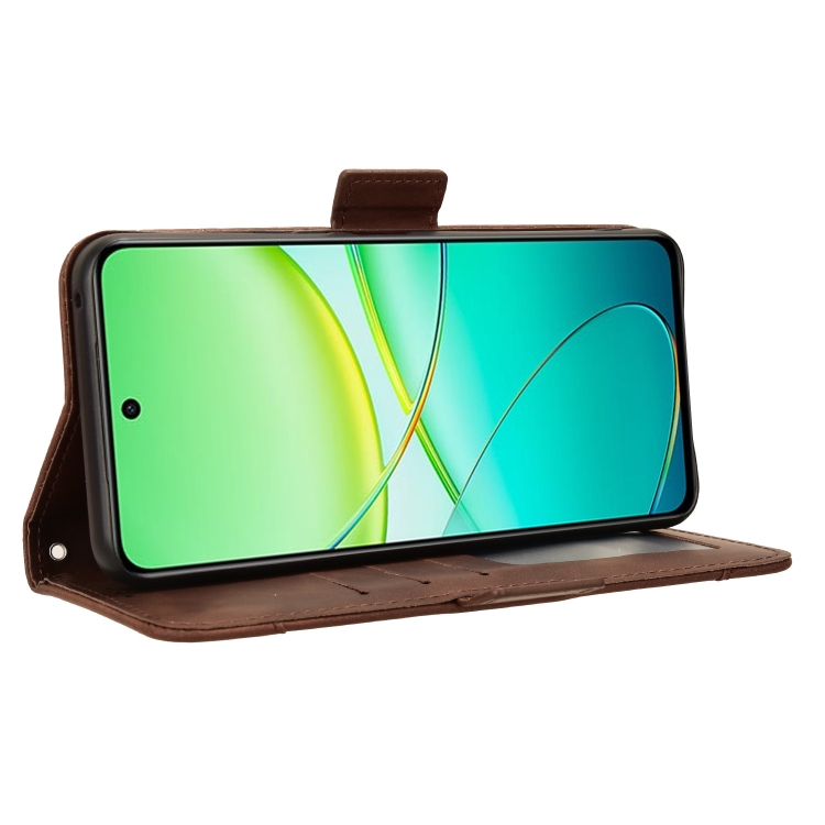 Funda de Piel con Textura de Becerro y Ranuras para Tarjetas para Vivo Y58 5G (Marrón)