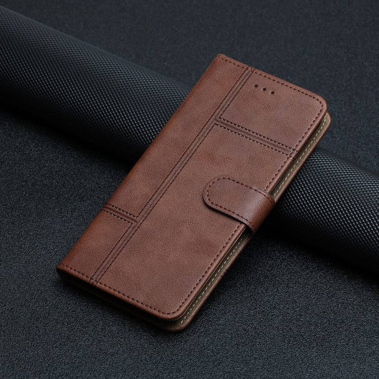 Funda de Cuero para iPhone 16 Pro Max Textura Piel de Vaca Costuras (Café)