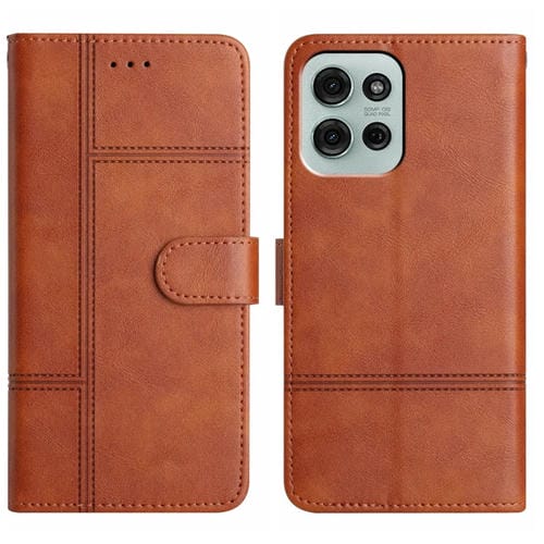 Funda de Cuero con Textura de Piel de Vaca y Costuras para Motorola Moto G75 (Marrón)
