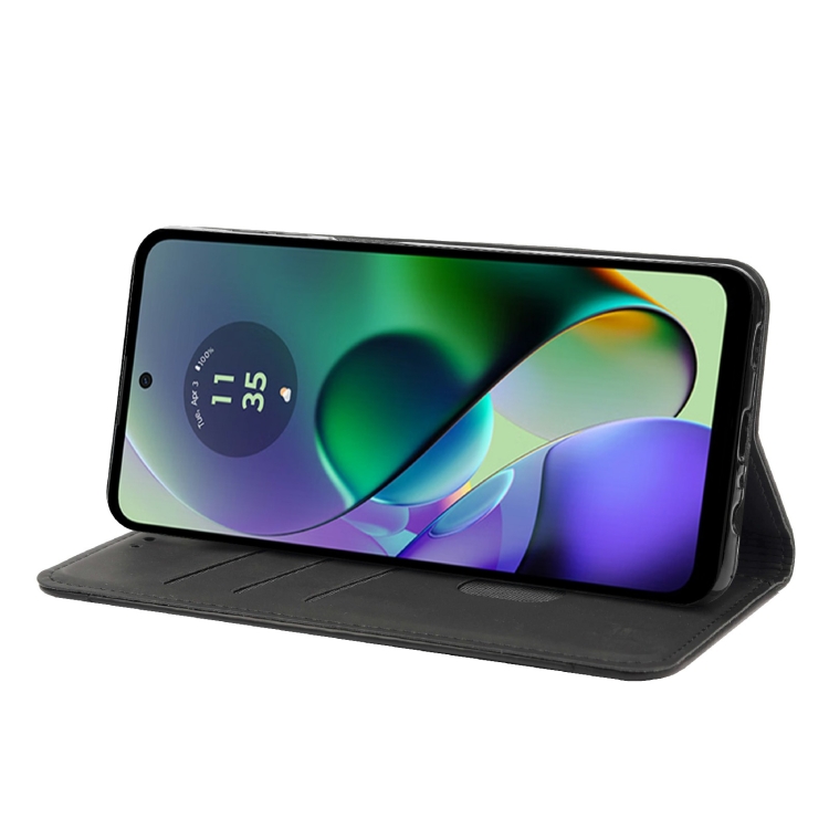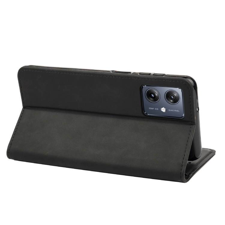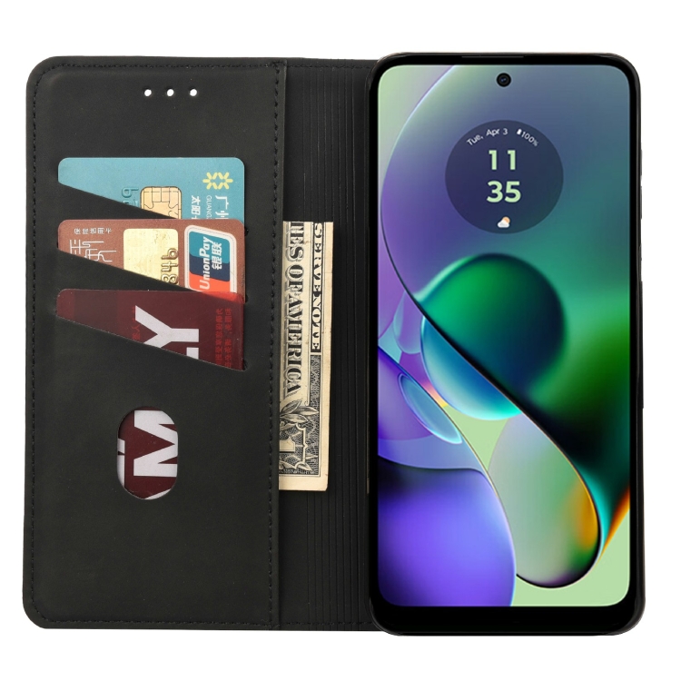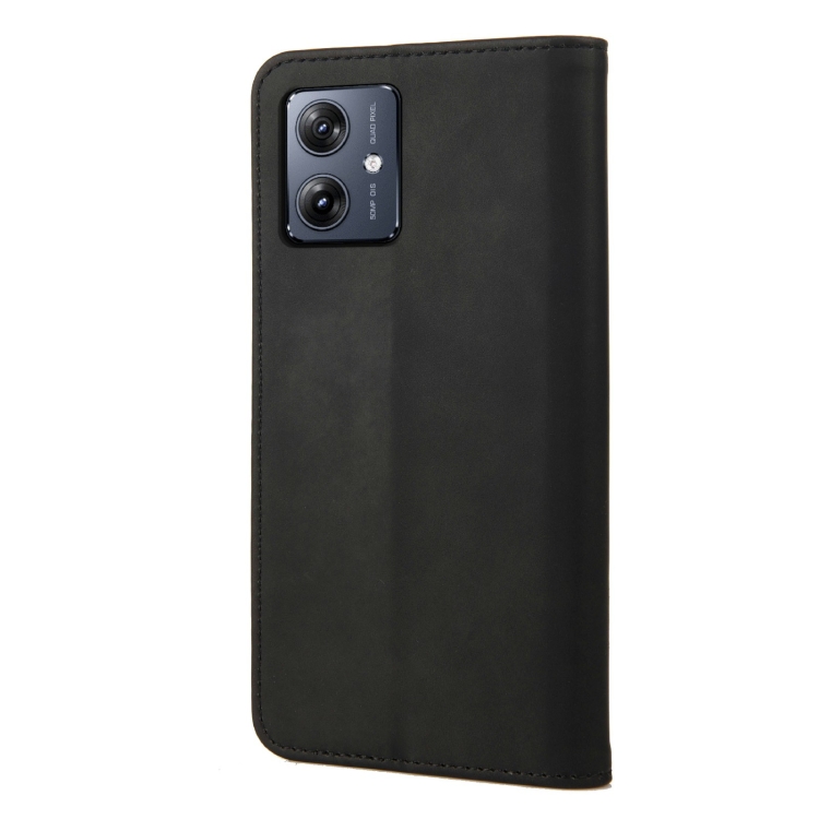 Funda de Cuero Textura Piel Sintética para Motorola Moto G55 (Negra)