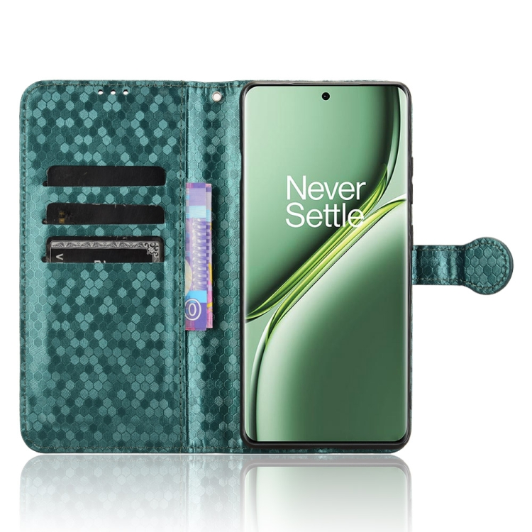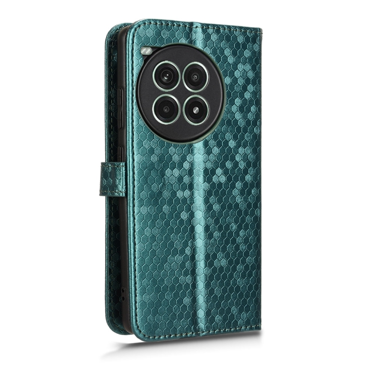 Funda de Cuero para OnePlus Ace 3 Pro con Textura de Puntos en Panal (Verde)