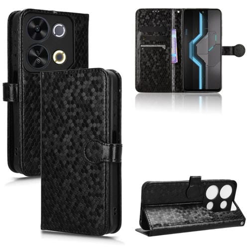 Funda de Cuero Itel P65 4G con Textura de Puntos en Forma de Panal (Negra)