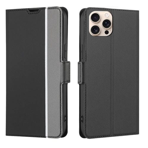 Funda de Cuero Textura de Sarga para iPhone 16 Pro con Botones Laterales (Negra)