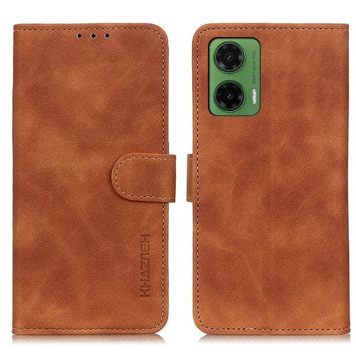 Funda de Cuero Khazneh para Motorola Moto G35 5G con Textura Retro (Marrón)
