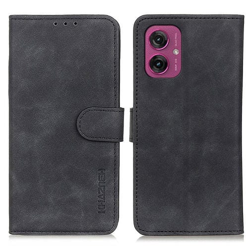 Funda de Cuero Khazneh con Textura Retro para Motorola Moto G55 5G (Negra)