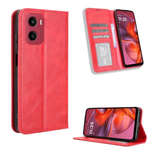 Funda de Cuero Textura Retro con Hebilla Magnética para Motorola Moto G05 4G y E15 4G (Roja)