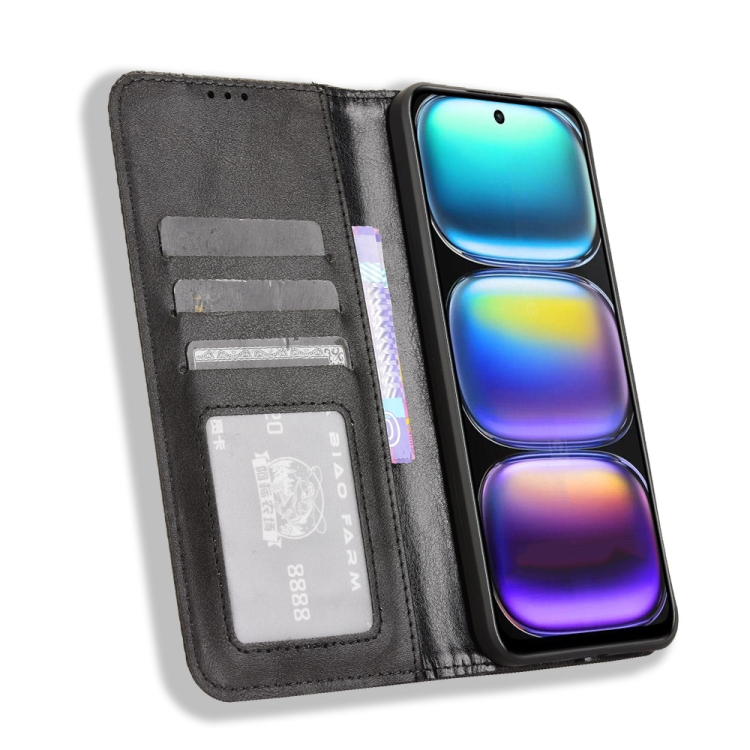 Funda Cuero Textura Retro con Hebilla Magnética para Infinix Hot 50 5G (Negro)