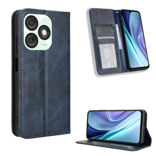Funda de Cuero Itel A50 con Textura Retro y Hebilla Magnética (Azul)