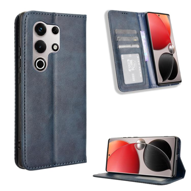 Funda Cuero Itel S25 Ultra 4G Textura Retro Hebilla Magnética (Azul)