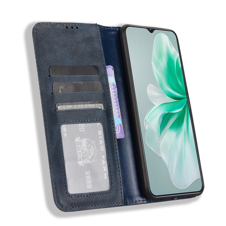 Funda de Cuero Oukitel C38 Textura Retro Hebilla Magnética (Azul)