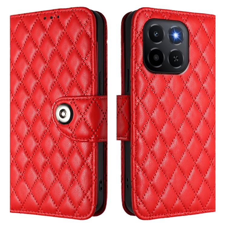 Funda de cuero con textura rómbica y cordón para Honor X6c 4G (roja)