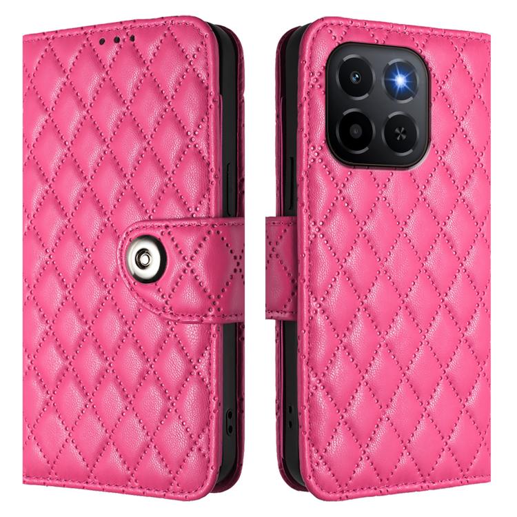 Funda de cuero con textura rómbica y cordón para Honor X6c 4G (rosa)