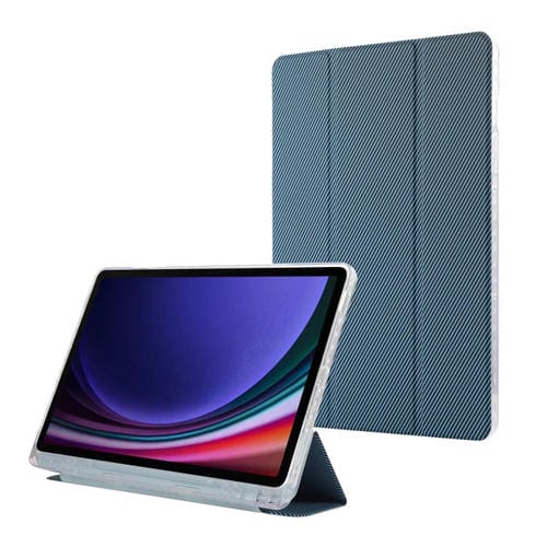Funda para Tablet Samsung Galaxy Tab S9/S9 FE Cuero Tres Pliegues Fibra de Carbono Acrílico (Azul)
