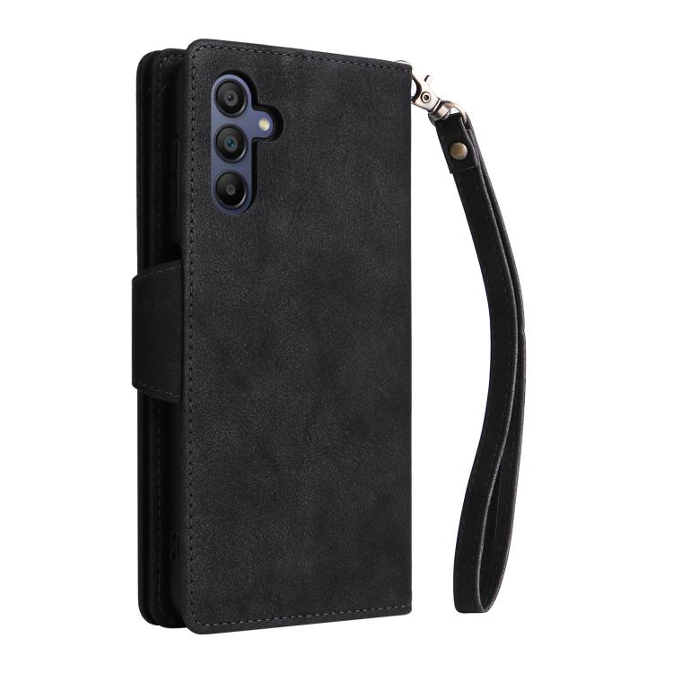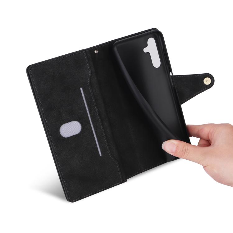 Funda de cuero con tres pliegues y hebilla de remache para Samsung Galaxy A26 5G (negro)