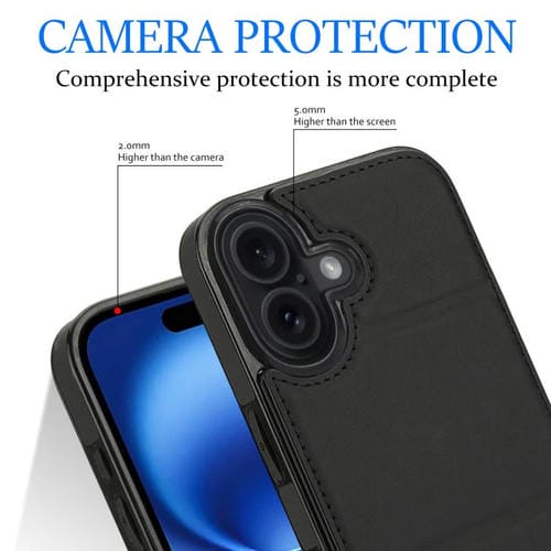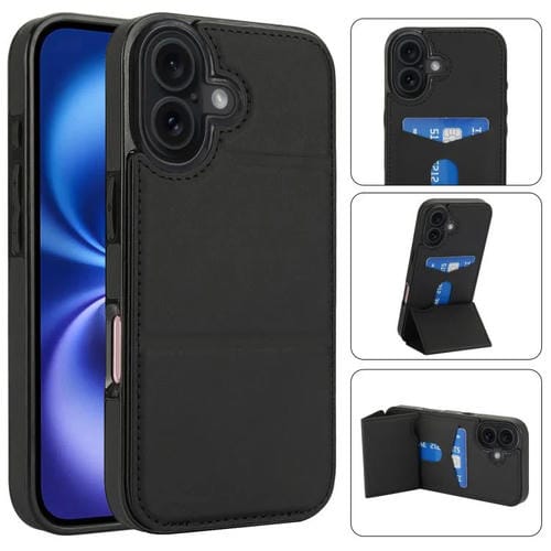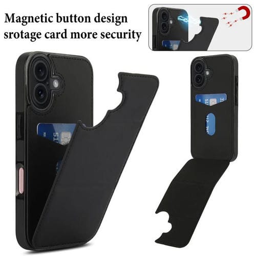 Funda de cuero con tres pliegues y ranura para tarjetas para iPhone 17 (negra)