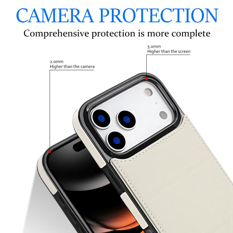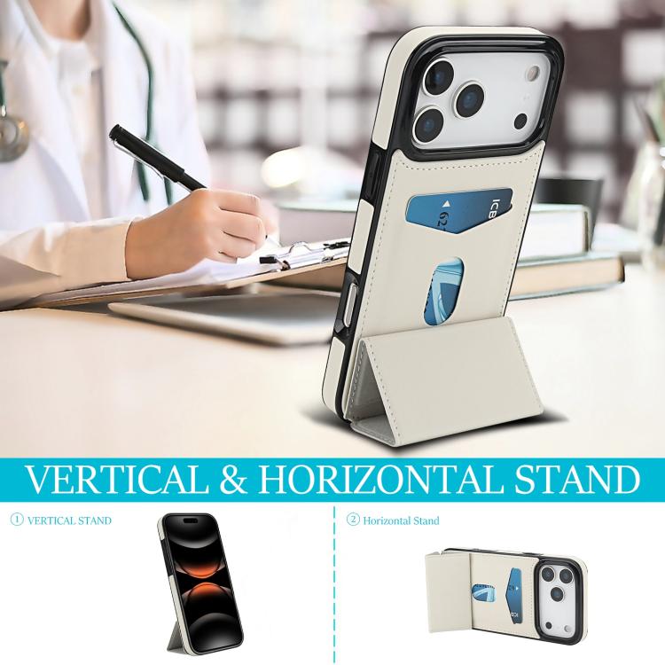 Funda de cuero con tres pliegues y ranura para tarjetas para iPhone 17 Pro Max (blanca)
