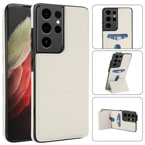 Funda Cuero Samsung Galaxy S21 Ultra 5G Tres Pliegues Ranura Tarjetas (Blanca)