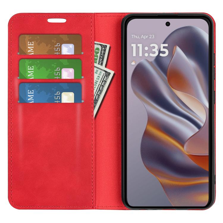 Funda de Cuero con Ventosa Magnética para Motorola Moto Edge 50 Neo 5G Retro-Skin (Rojo)