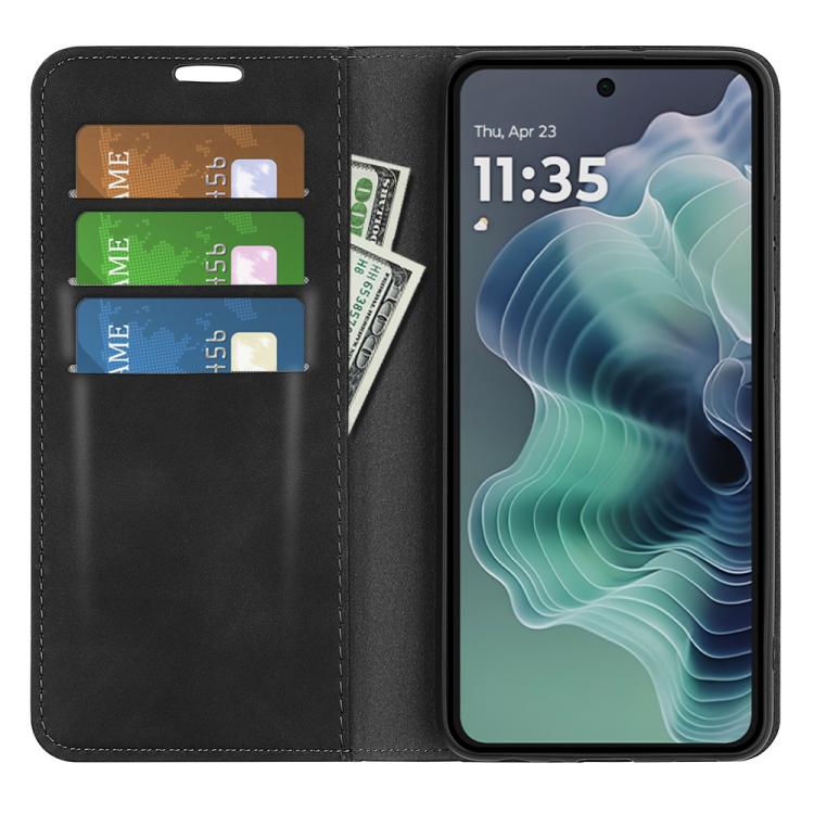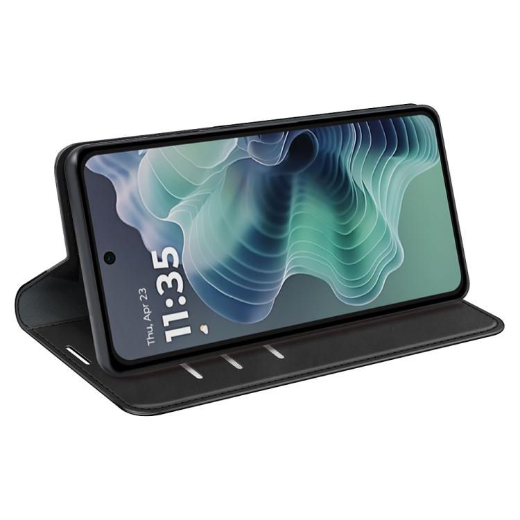 Funda de Cuero con Ventosa Magnética para Motorola Moto G35 5G Retro-Skin (Negra)