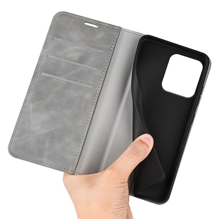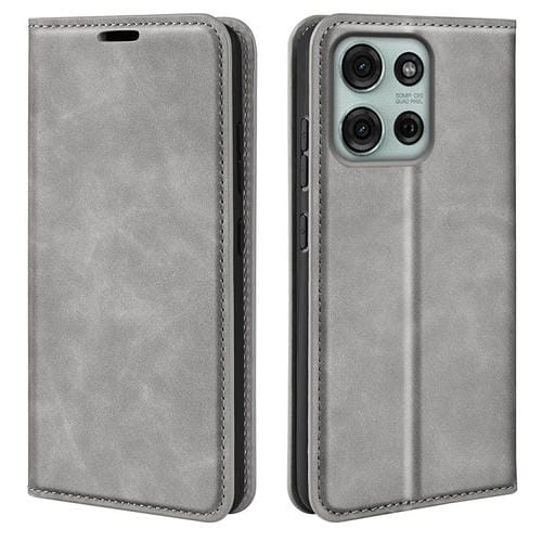 Funda de Cuero con Ventosa Magnética Motorola Moto G75 5G Retro-Skin (Gris)