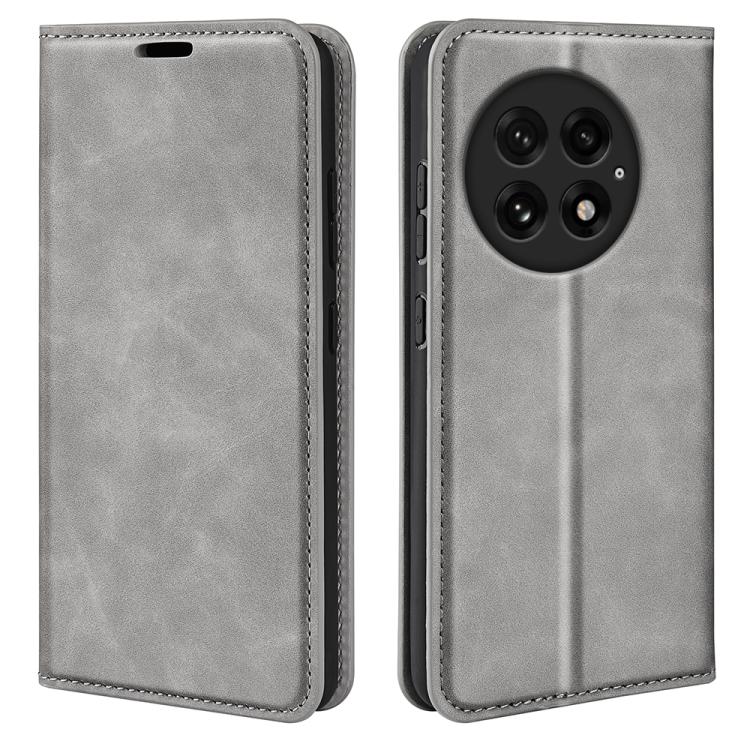 Funda de Cuero con Ventosa Magnética para OnePlus 13 Retro-Skin (Gris)