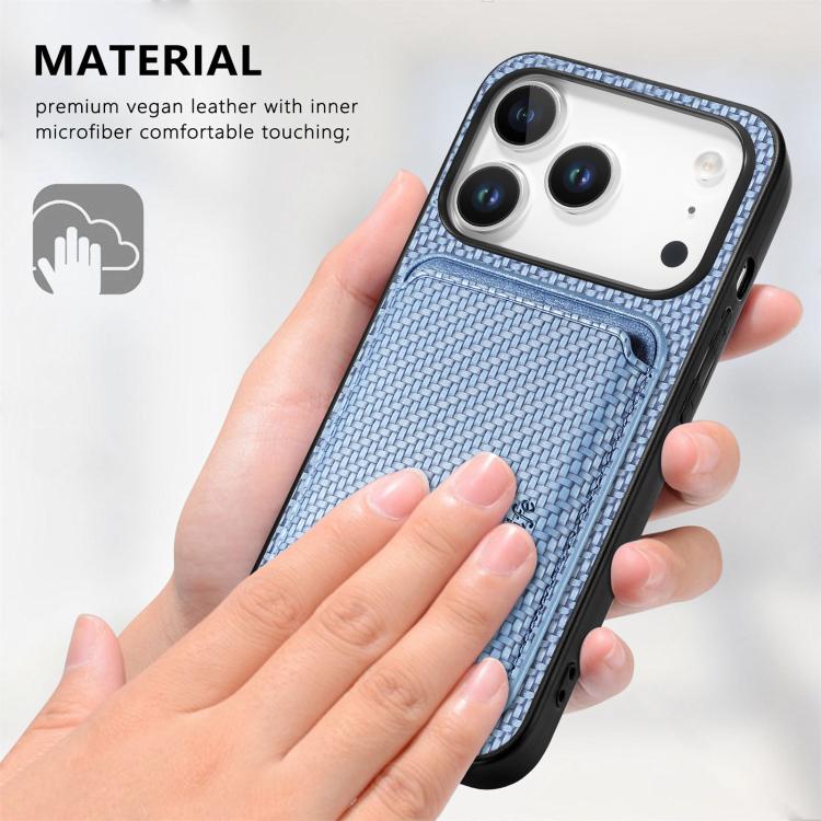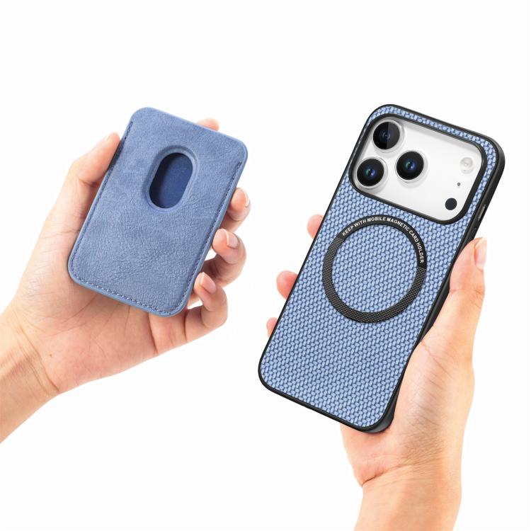 Funda de cuero de fibra de carbono con tarjetero Magsafe para iPhone 17 Pro (azul)