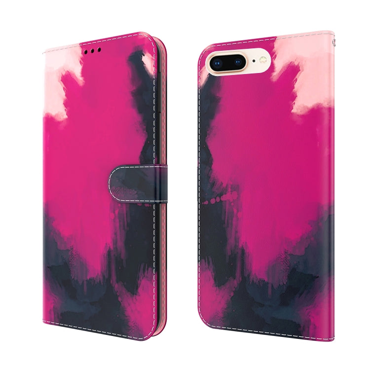 Funda de Cuero Flip Horizontal Patrón Acuarela con Soporte y Ranura para Tarjeta y Billetera para iPhone 8 Plus y 7 Plus (Berry)